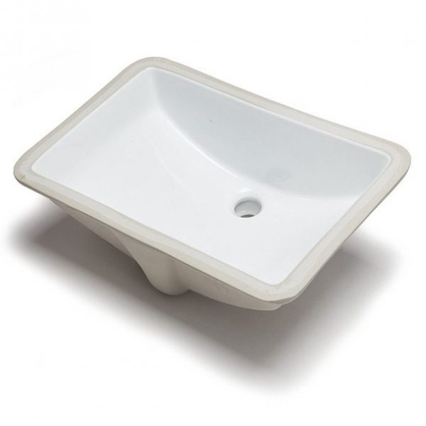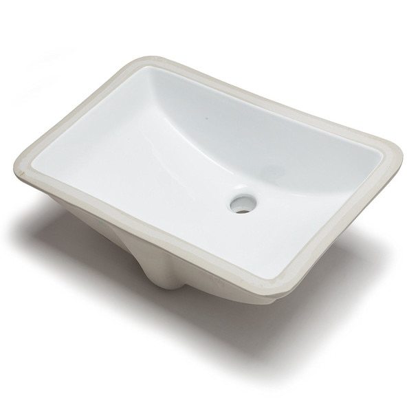 The rectangle shape of this white ceramic under mount bathroom sink features a single-hole drilling on the faucet deck made from strong vitreous ceramic material. The contours of the sink curve outward to complement the curved design of the interior basin. Its universal appeal allows it to coordinate with contemporary or traditional designs.